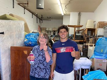Brad Ballard got a call from Mrs. Brandt of Danville asking how she could repurpose some of her furniture. she contacted the right GUY Brad & The Hauling Heroes. Here he is handing it off to Make It Home Ladies who will touch it all up and deliver to a family in NEED